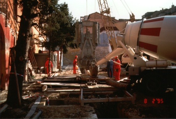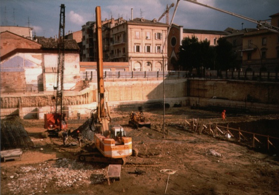 Il Centro Direzionale di Macerata la demolizione dei fabbricati esistenti la realizzazione dei diaframmi da 1200mm la trivellazione dei pali di fondazione il montaggio della gru la struttura in c.a. dell'autorimessa sotterranea Il Messaggero 8/10/1994 Il Messaggero 22/10/1994 Il Messaggero 25/10/1994 Il Messaggero 29/10/1994 Il Messaggero 2/11/1994 Il Resto del Carlino 16/11/1994 Il Messaggero 14/02/1995 Il Messaggero 18/04/1995 Il Messaggero 11/04/1996 Il Messaggero 9/06/1996