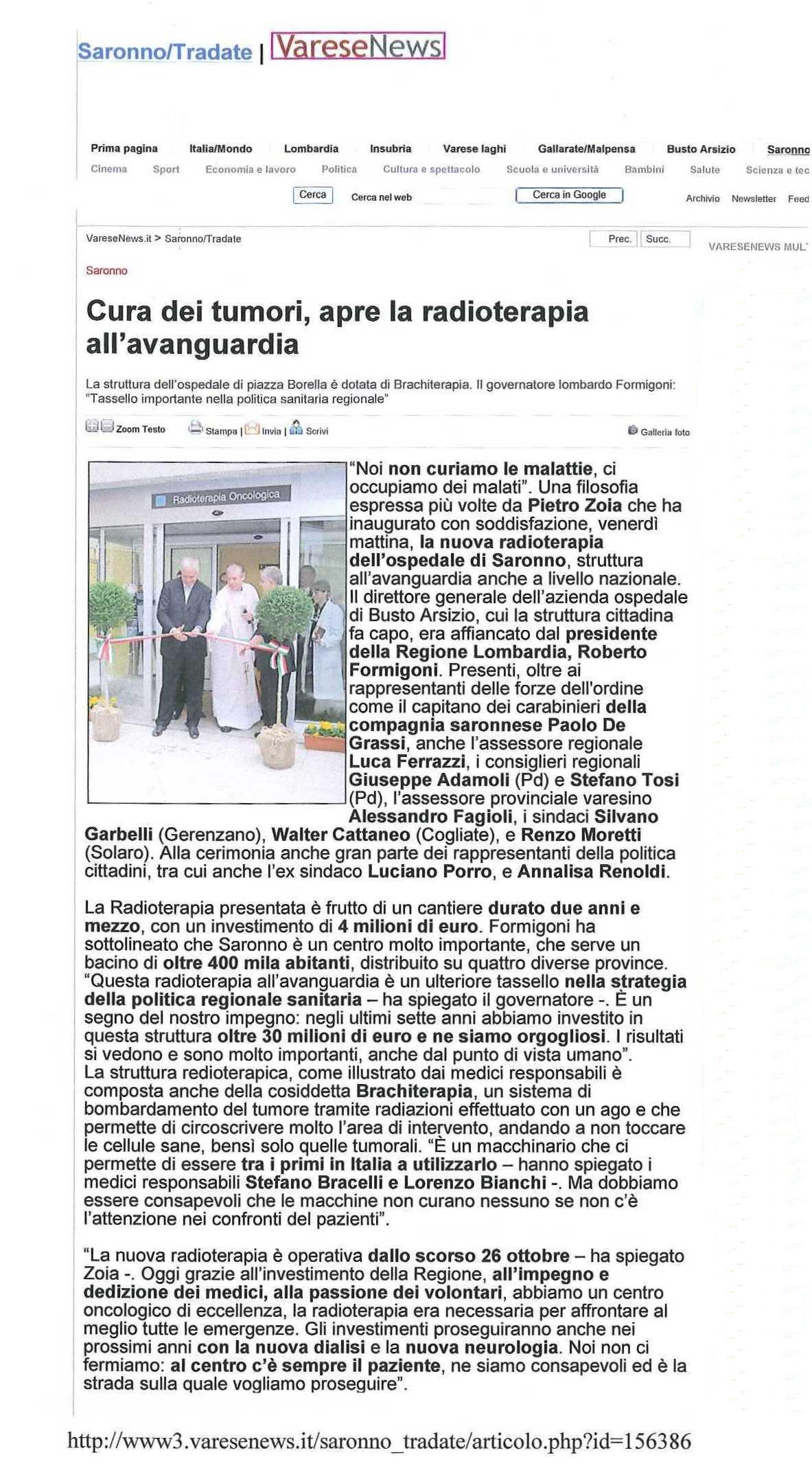 Esterno (cantiere) Esterno (cantiere) Esterno Ingresso (cantiere) Ingresso T.A.C. Corridoio Collegamento al padiglione centrale Terrazza L'acceleratore lineare L'inaugurazione - 13 nov. 2009 - Varese News Il Primario,